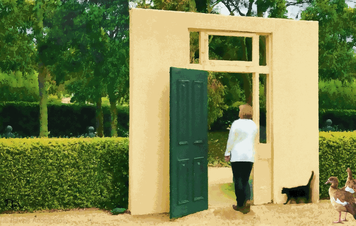 Pavlos AndronikosStrange things happen when you’ve been in enforced isolation too long. You begin to feel trapped, like an animal in a cage rattling at the bars, frantic for freedom, desperate for company. You stand at your open door looking out, and the house disappears around you. Just a door left, a door in a wall… and a cat hugging the wall fearful that it too may vanish like the sociable young wombat whose head and one paw keep appearing and disappearing up in the trees. And then again, sometimes you are overcome by stranger visions, a magic flying settee takes off past your window with a startled child on board. An exotic lizard parks itself in your living room calmly eyeing your camera bag. You fear you are losing your mind… and you are. A mist descends and the trees turn ghostly with whispers. You put out your cigarette…you’ve been alone too long. For relief, you start up your computer and play with pictures…
