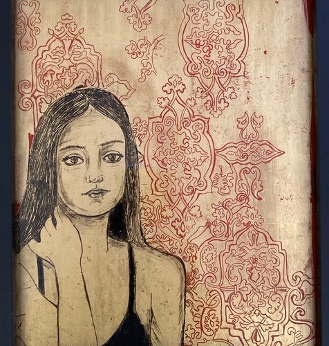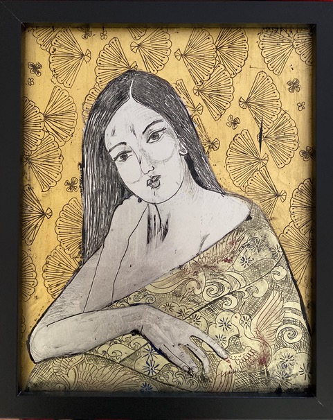 Tina SiderisAs the world all took a collective breath and was forced inside, I took the opportunity during the restrictions to make the most of the extra time that fell in my lap. I saw this time as a blessing. I went straight into my art studio and let the work manifest itself while my brain caught up as the art was taking shape. Fortunate for me the intimacy that I lost with my students became time I spent with my family. This time of pause, unexpectedly, provided for a stage of well-being, endless hours in the art studio and in these precious moments my daughters became my muses. This stretch of time allowed me to indulge in the exploration and to trial different materials and techniques. I enjoyed the interchange between materials and techniques, including, the egg tempera technique and the gilded glass technique of ‘Verre Eglomise’ that was predominant during the Renaissance period. The subject matter ‘for isolation’ were my three daughters, who subconsciously surrendered themselves and became my muses, as we spent this most precious time together. Their serenity and stillness in a moment of contemplation and reflection, however fleeting, was enchanting.